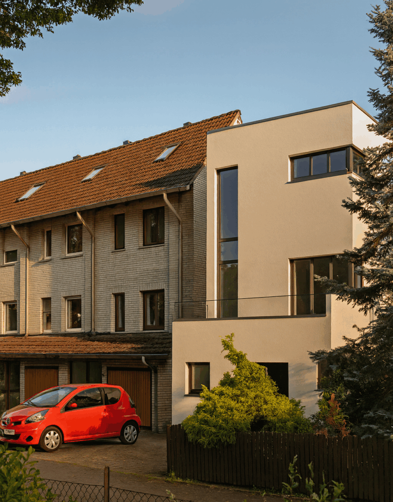 Abriss und Neubau eines Reihenendhauses im Bauhaus-Stil